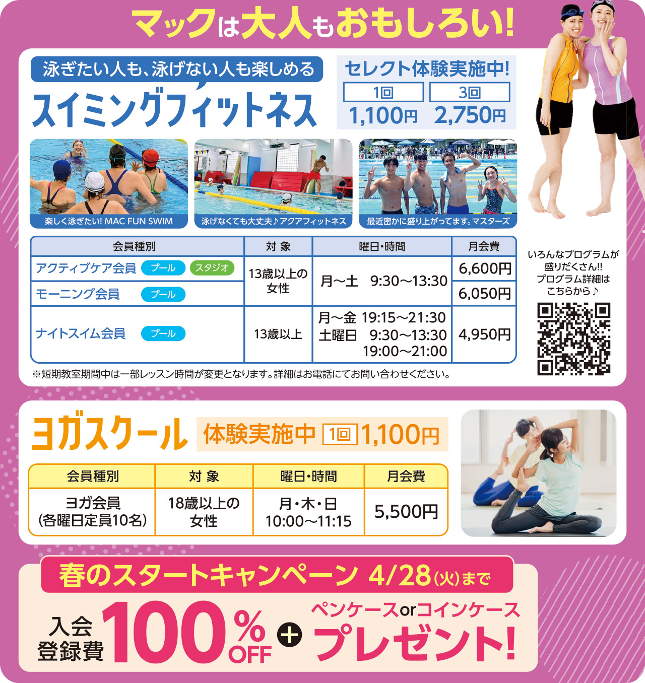 スイミングフィットネス1日体験・YOGA1回体験